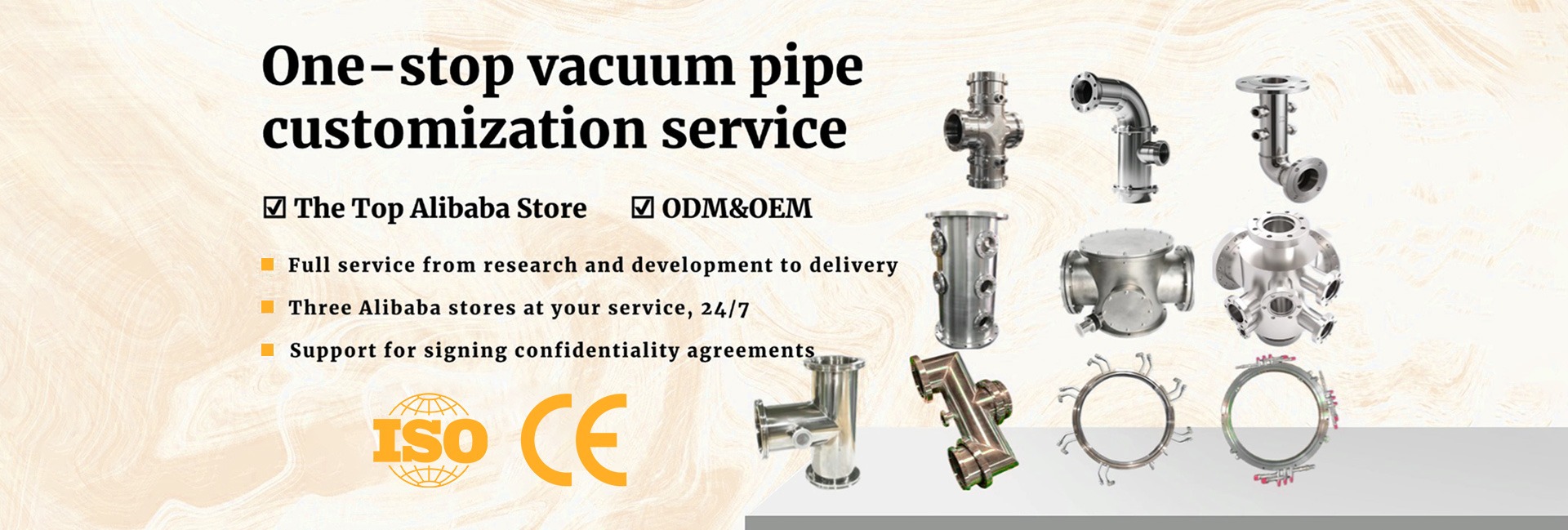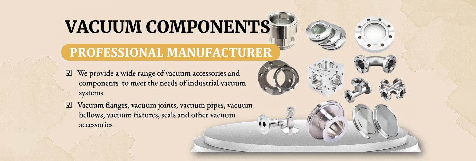 Productos principales:Personalización de cámara de vacío, personalización de brida de vacío, piezas estándar de vacío, tubería de vacío, ventana de vacío (ventana de observación)